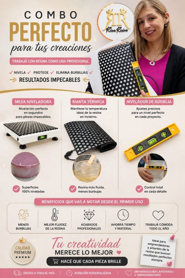 La manta térmica ayuda a mantener la temperatura ideal de la resina para que trabaje mucho más fluida, con menos burbujas y mejores acabados 💎